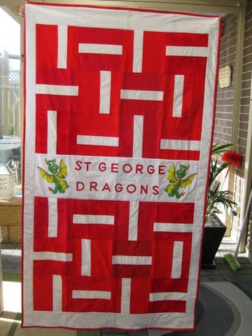 When Rita C comes to my home for a sewing day I usually let her loose in the Aussieh Heroes Fabric stash, tell her what sort of quilt we need and off she goes. She designs, cuts and pieces an entire quilt top on the day. This time a Melbourne Storm Quilt that was quilted by Joyce