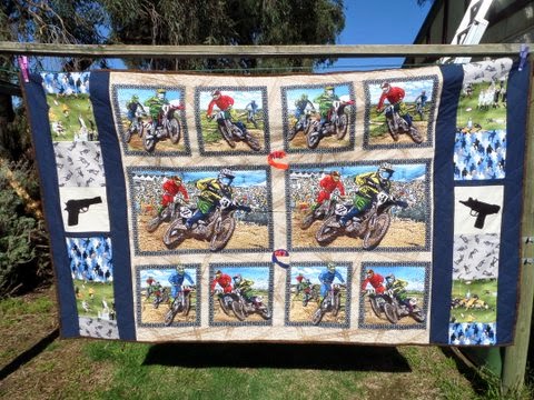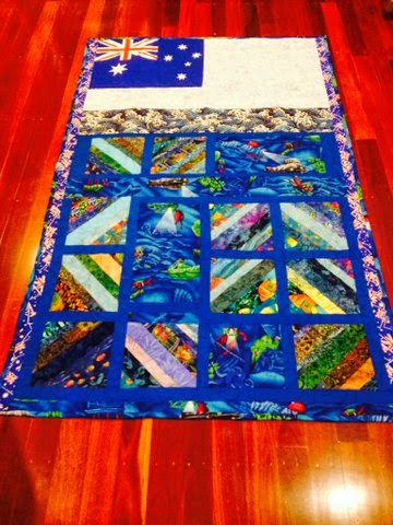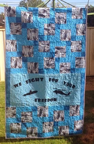 Yet more BOMs made by Dorothy were sent to Sue N and another gorgeous quilt resulted perfect for a music loving surfie. I am loving seeing these BOMs turn into personalised quilts!