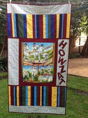 This candy cotton coloured quilt top was sewn at a Penrith sewing day (see – we have lots of fun on those days!!!) and quilted by Joyce. I can’t wait to hear HIS response to this one! (and no, it is not for his wife, girlfriend or daughter!)