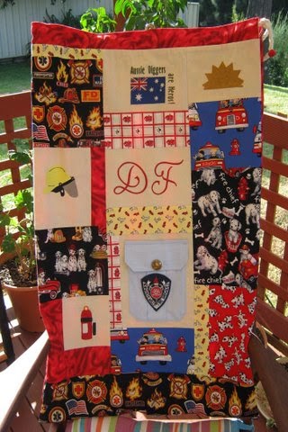 This quilt top was made by Lynn from donated blocks and Stephanie T quilted this one – she added a map of Australia in the middle of it with watery lines around it!