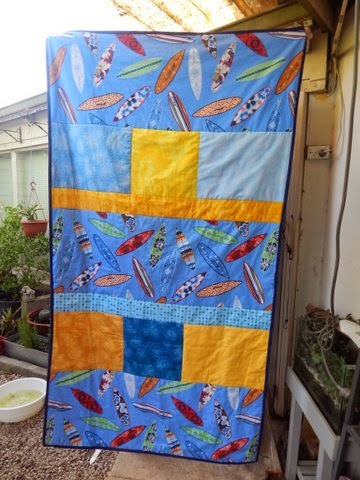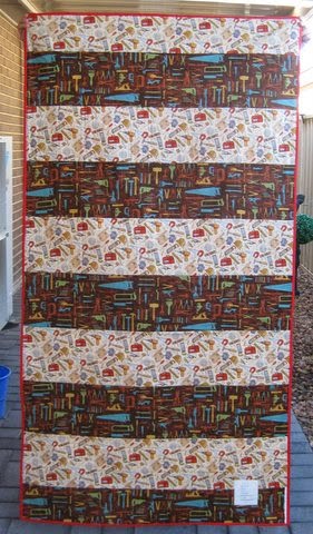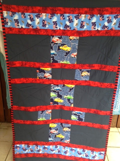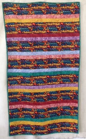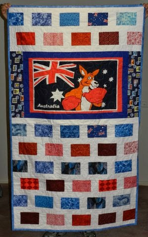 This quilt top was made by Lynn from donated blocks and Stephanie T quilted this one – she added a map of Australia in the middle of it with watery lines around it!