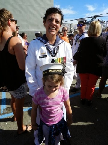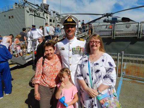 Back in November the Captain of HMAS Melbourne invited me to be there as his guest when HMAS Melbourne came home. This is something I have wanted to do each time one of our ships has come home but it something I would not do in the past for two reasons. Firstly I feel it is family time and I didn’t want to intrude and secondly, as some of you know, I have chronic arthritis in both knees and that makes getting around really difficult. The logistics of where to park etc and how far to walk and standing waiting would have been too much for me. So, when the Captain offered to send a car to get me, plus my husband or a guest of my choice, and promised to take care of the arrangements for seating etc, I was thrilled to say the least. (ok well that might be a bit of an understatement).