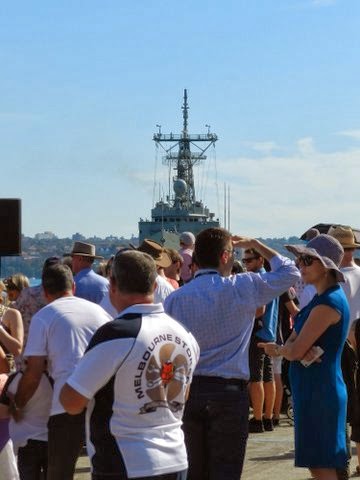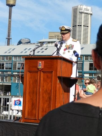 Murray was able to drive on to the wharf at Garden Island and park with the other service vehicles and it was just a short walk to where the proceedings were to take place. We were seated with the Captain’s wife (and two gorgeous little pink dressed girls) and just behind the Prime Minister and his wife.