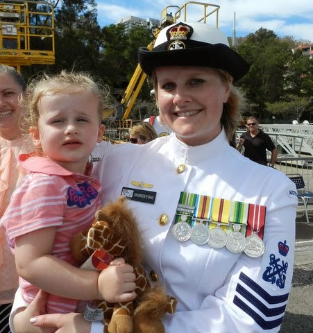 Brian took command of HMAS Melbourne only a few days prior to them sailing for the Middle East. Stop and think for a moment about what is involved in getting yourself ready to deploy for several months. Could you do that in three days and what is more….could you prepare your small children for the fact that they won’t see Daddy for several months in just a few days? It is a big ask, but it happens at all rank levels, and across all three services from time to time, and it is something that noone makes any fuss about. Our men and women in uniform just get on the with the job and make the best of it but still, it is another reason we should be saying thank you to them.