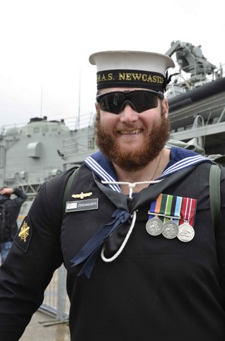 and right at the end of the day… just as we were getting back to our cars, this lovely lady appeared having had her car park next to ours. Lisa was largely responsible, with a team of others, for keeping the HMAS Newcastle Facebook page undated constantly. What a bonus for the families. When there are 1100 family members and friends jostling to see their beloved crew member when the crew disembarks it is easy not to catch up with people. We were delighted to catch up with Lisa briefly and Wendy especially so as she had just said to me that she had made laundry bags for two girls on HMAS Newcastle and had not seen either…… until Lisa walked up! I think that rounded Wendy’s day off just nicely!