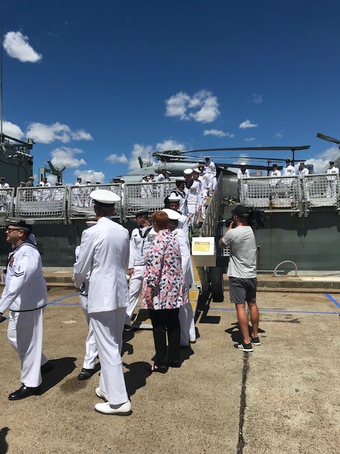 At last they were allowed to disembark and the Fleet Commander, Fleet Warrant Officer, Commander Australia Surface Forces and The Minister for Defence all lined up to shake everyone’s hand and welcome them home. If only ALL our troops could have a welcome like this.