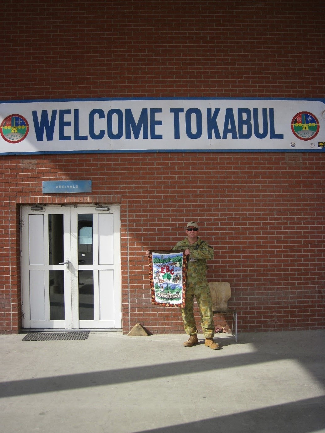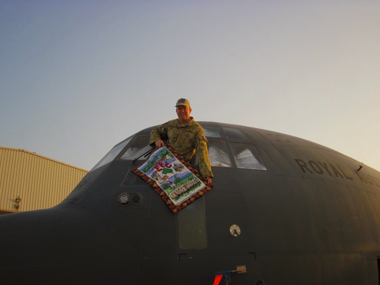 I am still in contact with a recipient from the Navy who received his quilt whilst he was on HMAS Melbourne for Op Slipper. He sent me this picture with the following comment.