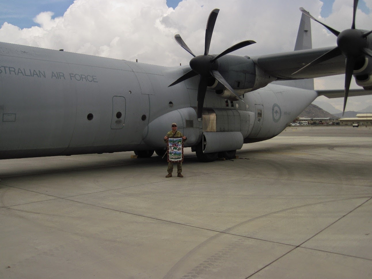 We are supporting both the Australian and ISAF missions. We fly into Afghanistan often moving people and cargo around the Middle East to where it needs to go. As a maintainer, we are always flying with the aircraft in case it breaks and needs fixing. There are so many different countries involved. The other day I was in a French restaurant eating a hamburger with my rifle and cams on a military base in a Southern province in Afghanistan! Very surreal! The bases are like little towns with KFCs, post offices, banks, heaps of shops and lots of people on them. The bag you made for me has been on a couple of missions now to different places around the Middle East and Afghanistan, with some photos I’ve taken of it attached to this email.