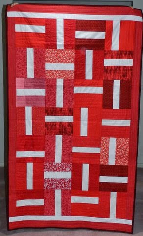 Add some white in to the mix and you still have a quilt suitable for an Essendon fan, but one that could do double duty and go to a St George fan.