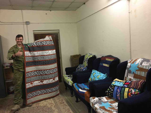 Each one of us deployed over here are very thankful for all the work and effort that quilters from AHQ like yourself put in to create such beautiful quilts.