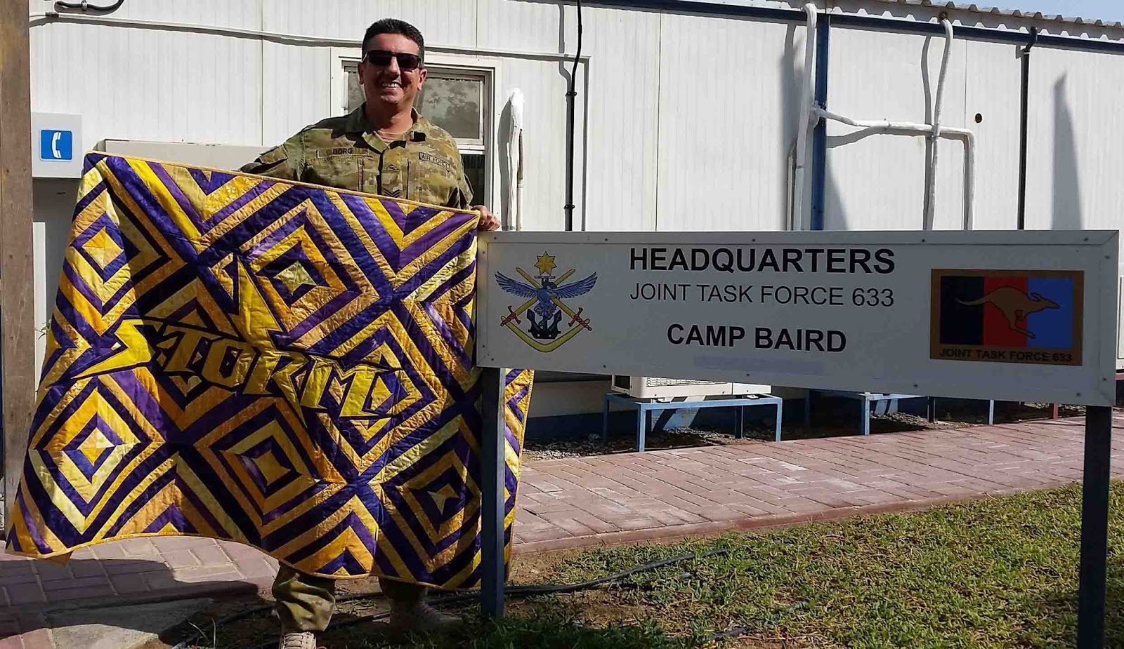 I am an ADG currently serving in the Middle East. I recently received a gift from you, an amazing quilt that you and your sister made for me. I thank you so much for all of your efforts, this quilt is fantastic, I love it. I have been here for 6 months. I have a wife and 5yr old son at home he’s started school this year. I’m due home at the end of XXXX, I can’t wait to see them. Thank you again for the quilt, it is much appreciated, for all the efforts you have made for it and others that also do the same from Aussie hero quilts. Also thank you for the chocolates as well, they will go down a real treat. Take care.