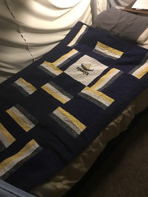 Today I received a lovely gift from Philomena, a North QLD Cowboys quilt that now sits proudly on my bed.
