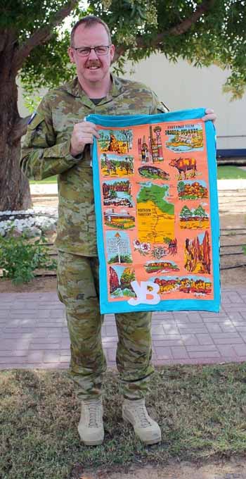 Thank you once again for your lovely gift. It was a pleasure to know it was made with love and care from someone who understands what it means to serve, but also how much it takes to support those who serve. So, thank you for your service and support to the troops of Australia. It won’t be forgotten. I look forward to one day being able to show this laundry bag to my own children and tell them the story of how a lovely lady from South Australia made it for me and my time on deployment.
