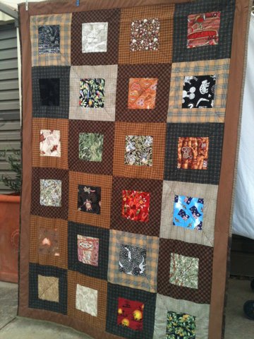 The quilt is amazing!!!  He told me the other day that he got it and he was so grateful and touched by the fact that someone (or several) went to such an effort for him!  And he was so grateful that you thought to do this for him.  We both can’t thank the ladies involved enough.  It’s perfect!!  😀 and believe me, its no little thing what you did…..It really means a lot to both of us that you all took time out of your certainly busy lives to put this together for him!