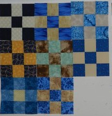It seems, from emails and notes that have arrived with the blocks for the Diddams family quilts, that some of you are a bit unsure of your colour choices and whether or not your blocks will fit in.    Firstly I thought I would split the blocks up into their groups so that you can see how we are going.  Secondly, I leave making my blocks till last.   If I think the quilt needs more balance then I will choose my colours accordingly.  For example in the first group we have here for SGT Diddams’ wife, TA, the pale one stands out but it won’t once I have made a couple more pale blocks as well.  Remember this is only 8 blocks and I know of more that are to come and there are probably some of you out there who are yet to choose your fabrics.  A couple of you have told me that if you block just doesn’t fit then feel free to not use it.  If it comes to that rest assured that your block will go into another Aussie Hero Quilt.  In fact I have a bit of an idea for what we can do if there are too many blocks but I don’t want to put it out on the blog in case it isn’t necessary.